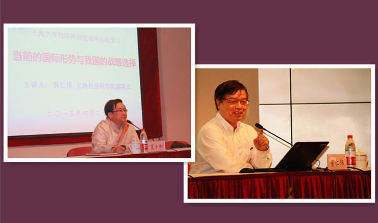 4月29日,上海社会科学院副院长黄仁伟教授为我校校院两级党委中心组成员作了《当前的国际形势与我国的战略选择》的专题报告。校党委书记、校长罗宏杰,校党委副书记、副校长李友梅,校党委副书记、纪委书记夏小和,校党委副书记、副校长徐旭、副校长丛玉豪、副校长唐豪等校领导及校院两级中心组成员,副处级以上干部,部分辅导员共两百余人出席了报告会,报告会由校党委副书记夏小和主持。