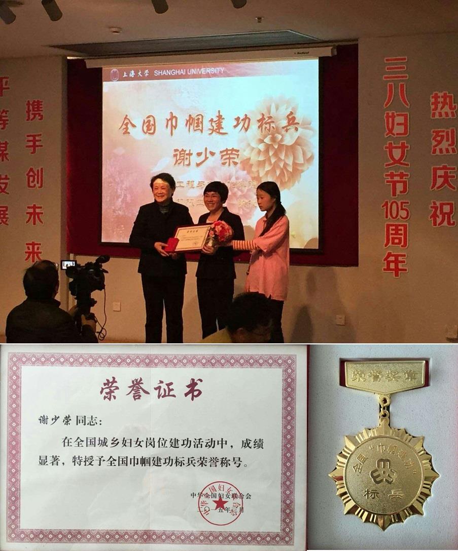 谢少荣教授荣获2014年度全国“巾帼建功”标兵