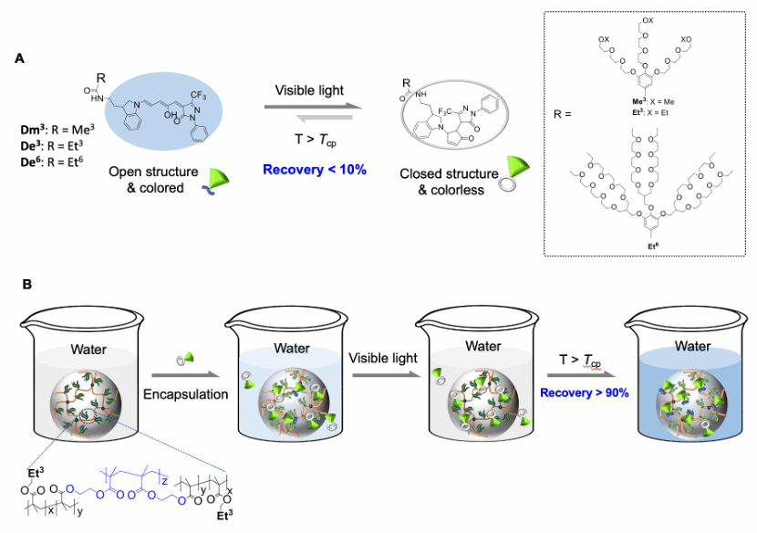 图1、温敏树枝化纳米凝胶调控斯坦豪斯加合物在水溶液中的可逆异构化