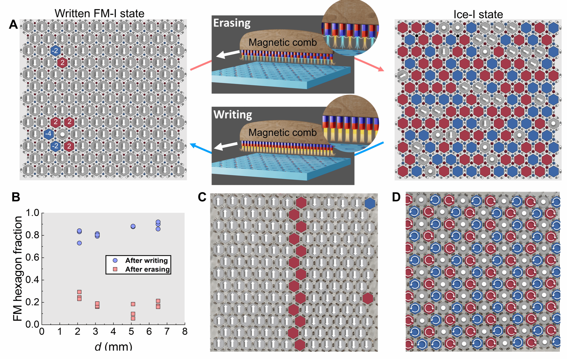 图2人工冰磁态结构的写入与擦除以及多维度调控