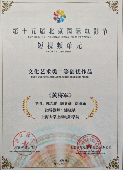 《黄将军》荣获北京国际电影节“短视频单元”创优奖