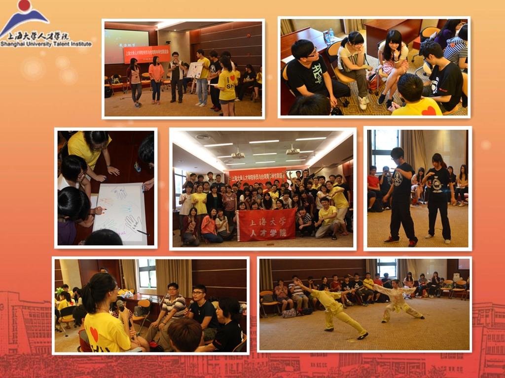 在我校外事办、文学院、材料学院的大力支持下,2013年7月11日,人才学院七期学员与来自台湾成功大学,中央大学等高校的三十二位赴沪台湾大学生在乐乎新楼思源厅进行了交流活动。交流活动由“破冰创作”逐步升温为对“梦想与责任”的思考与讨论。海峡两地的同学们在音乐声、讨论声和欢笑声中敞开了心扉,分享了属于青年人的思考与梦想,建立了真挚的友谊,传递了向上的能量。